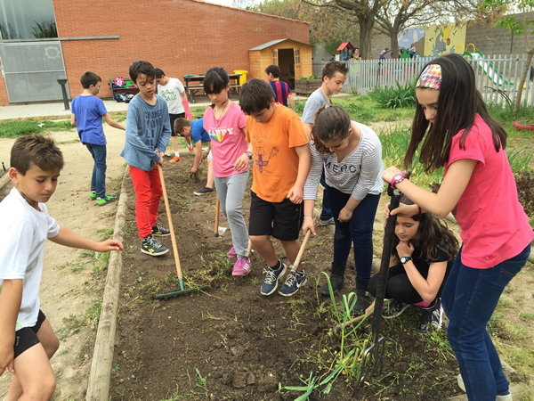 La gent de cinquè han collit alls tendres i posteriorment amb la fanga, el rasclet i les aixades han preparat la terra retirant les restes vegetals i esmicolant els terrossos de terra. Ja falta poc perquè l'hort del mig estigui en condicions per trasplantar-hi els carbassons.